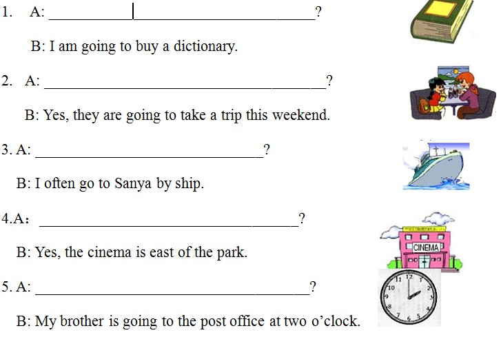 根据图片所给的提示,认真阅读答句,提出相应的问句,让对话合理、通顺,并且与图片相符合。(每小题2分,共10分)