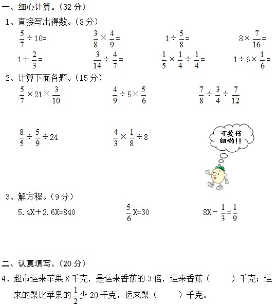 深圳奥数网11月1日 随着深圳期中考试的临近,小编收集了一些试题给大家练练手,以下试题是深圳考试试卷(苏教版)。希望这些试题对大家有帮助。