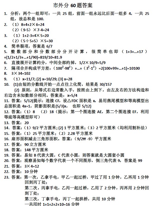 2013年市外分小升初冲刺考试训练60题答案 深圳e度论坛 2013-05-30 14:56:30 2013年市外分小升初冲刺考试思维训练60题 本地下载和在线阅读试题请点击第二页 首页 上一页 下一页 尾页