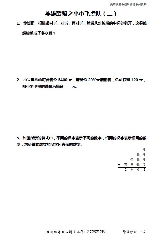 小编提示:深圳奥数网[微博]将会对炒饭老师启智杯英雄联盟计划跟进,同时,你还可以登陆e度论坛参与在线答题,并还可以向炒饭老师提问。