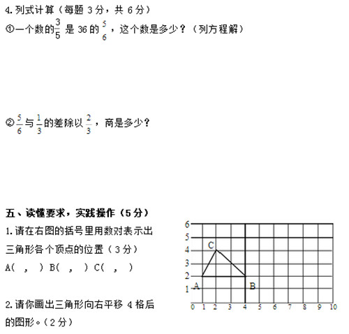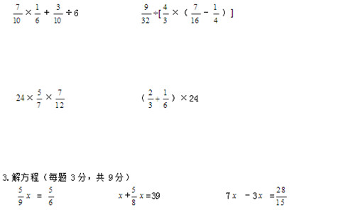 深圳六年级数学上册期中测试卷一(人教版)(2)