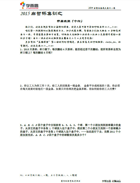 2015年深圳启智杯备考辅导试题及解析(十六) 深圳奥数网 2015-11-03 10:09:38 深圳奥数网:2015年深圳启智杯比赛将近,文章整理了备考辅导试题和解析,对2015启智杯备考很有帮助。 【试题目录>>>启智杯备考辅导试题及解析汇总】 【试题下载>>>启智杯备考辅导试题及解析】 试题: 答案请见第二页 首页 上一页 下一页 尾页