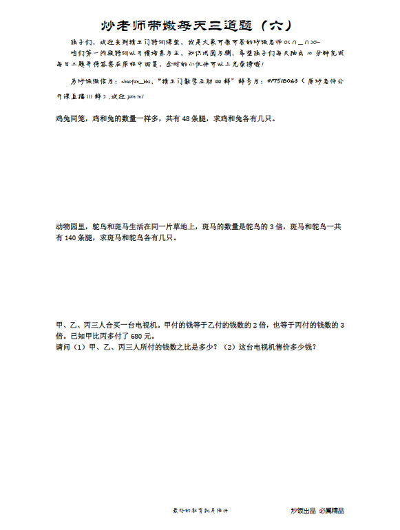 【试题下载>>>2015深圳小学五年级数学辅导每日三题】