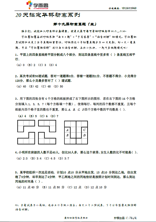 【试题下载>>>2016年深圳华杯赛初赛备考试题及解析】