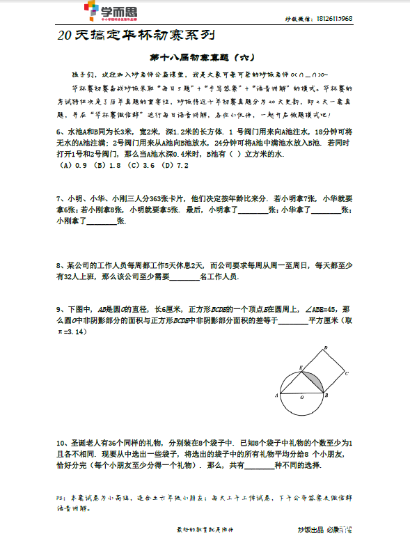 【试题下载>>>2016年深圳华杯赛初赛备考试题及解析】
