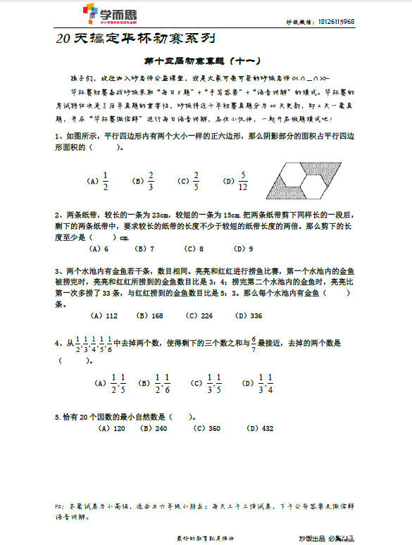 【试题下载>>>2016年深圳华杯赛初赛备考试题及解析】