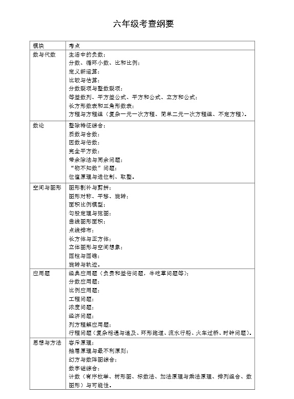 深圳第四届小学数学能力测试(小数测)考试马上就要开始啦,目前小数测各参赛年级的考试大纲已经发布,下面是小编将六年级小数测的考试大纲分享如下,供深圳赛区小数测考生参考。