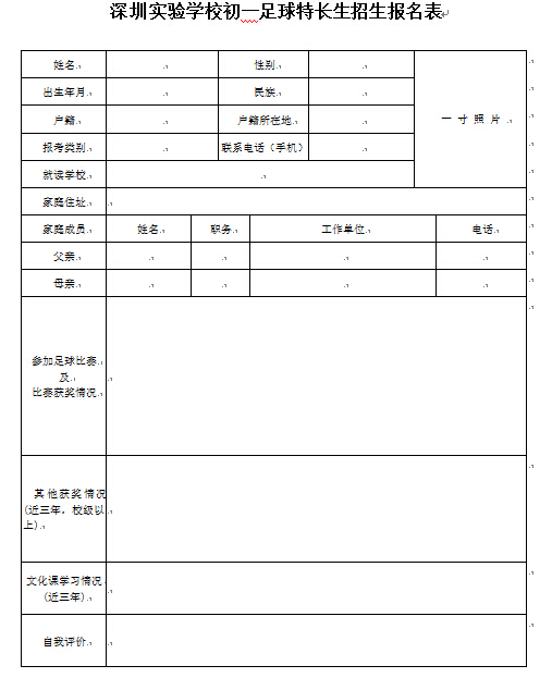 附件:深圳实验学校初一足球特长生报名表(点击下载)