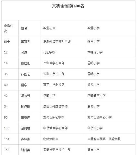 2016年深圳中学高分学子毕业哪所初中和小学呢?