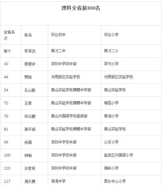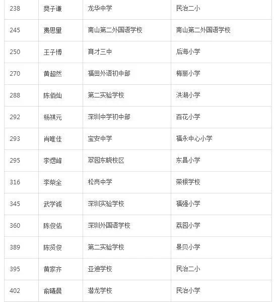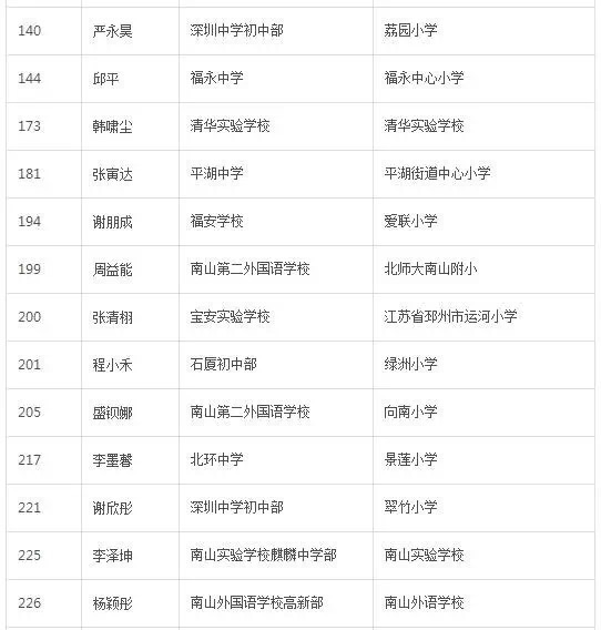 2016年深圳中学高分学子毕业哪所初中和小学呢?(2)