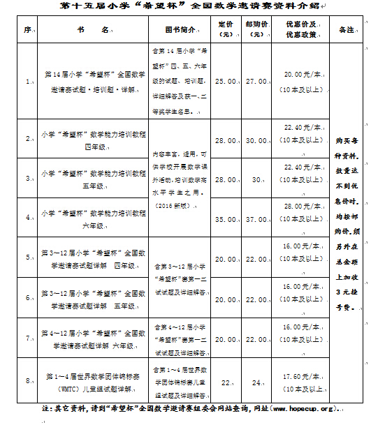 2017年深圳赛区第十五届小学希望杯报名已经开始【点击查看深圳赛区报名方式】,第十五届小学希望杯初赛(一试)也将在明年3月19日进行,下面是第十五届小学希望杯考试的参考材料,希望可以帮助深圳赛区的希望杯考生更好的备考。
