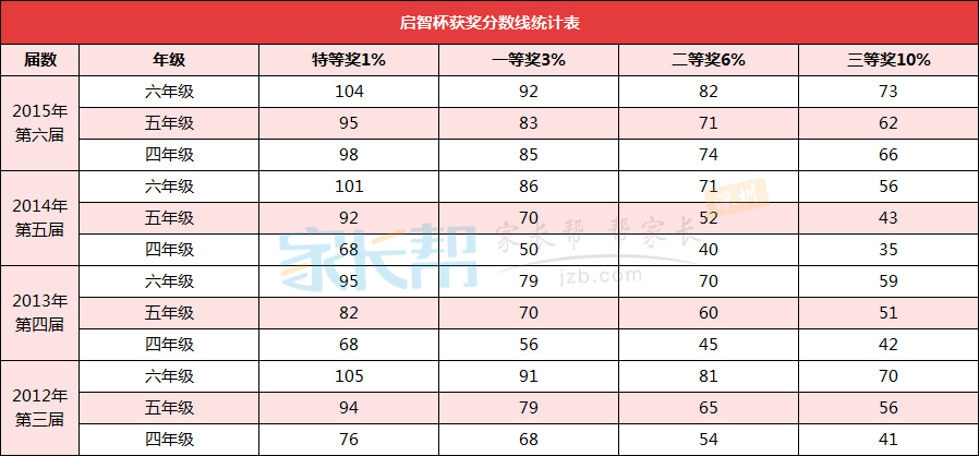 大家目前最关心的就是启智杯各个奖项的分数线了。现在给各位家长准备了一下往年的各奖项分数线,以供各位家长参考: