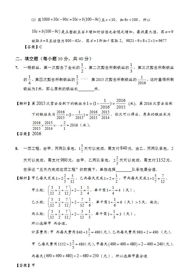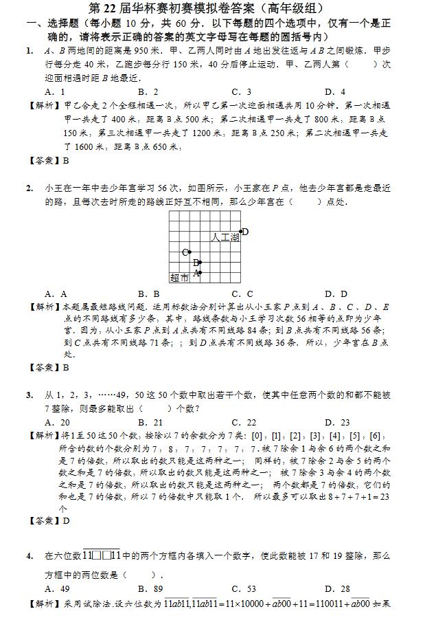 2017深圳22届华杯赛小高组模拟试卷及答案(2)