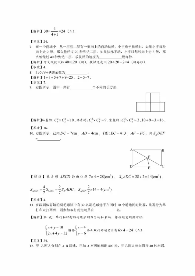 2017年深圳小学数学能力测试五年级答案解析(2)