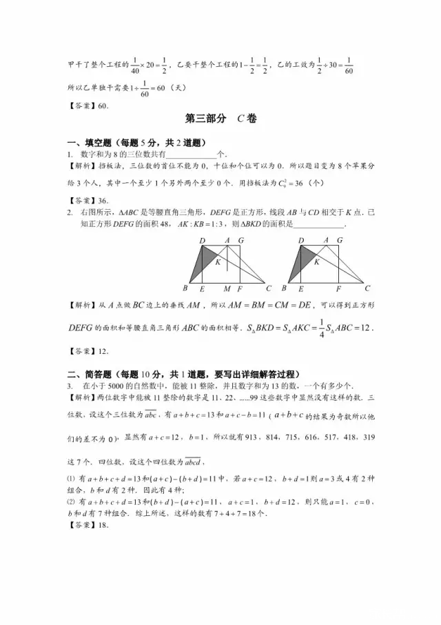 2017年深圳小学数学能力测试五年级答案解析(5)