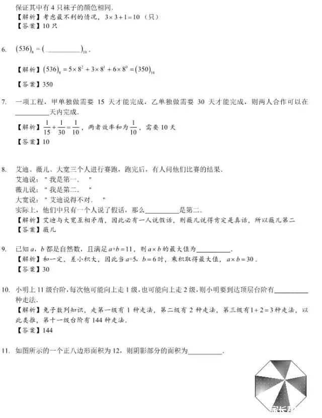 2017年深圳小学数学能力测试六年级答案解析(2)