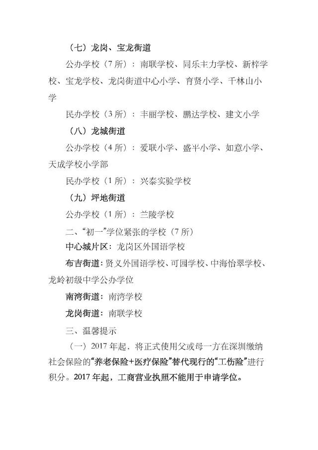 深圳龙岗区2017年秋小升初学位预警通告(2)