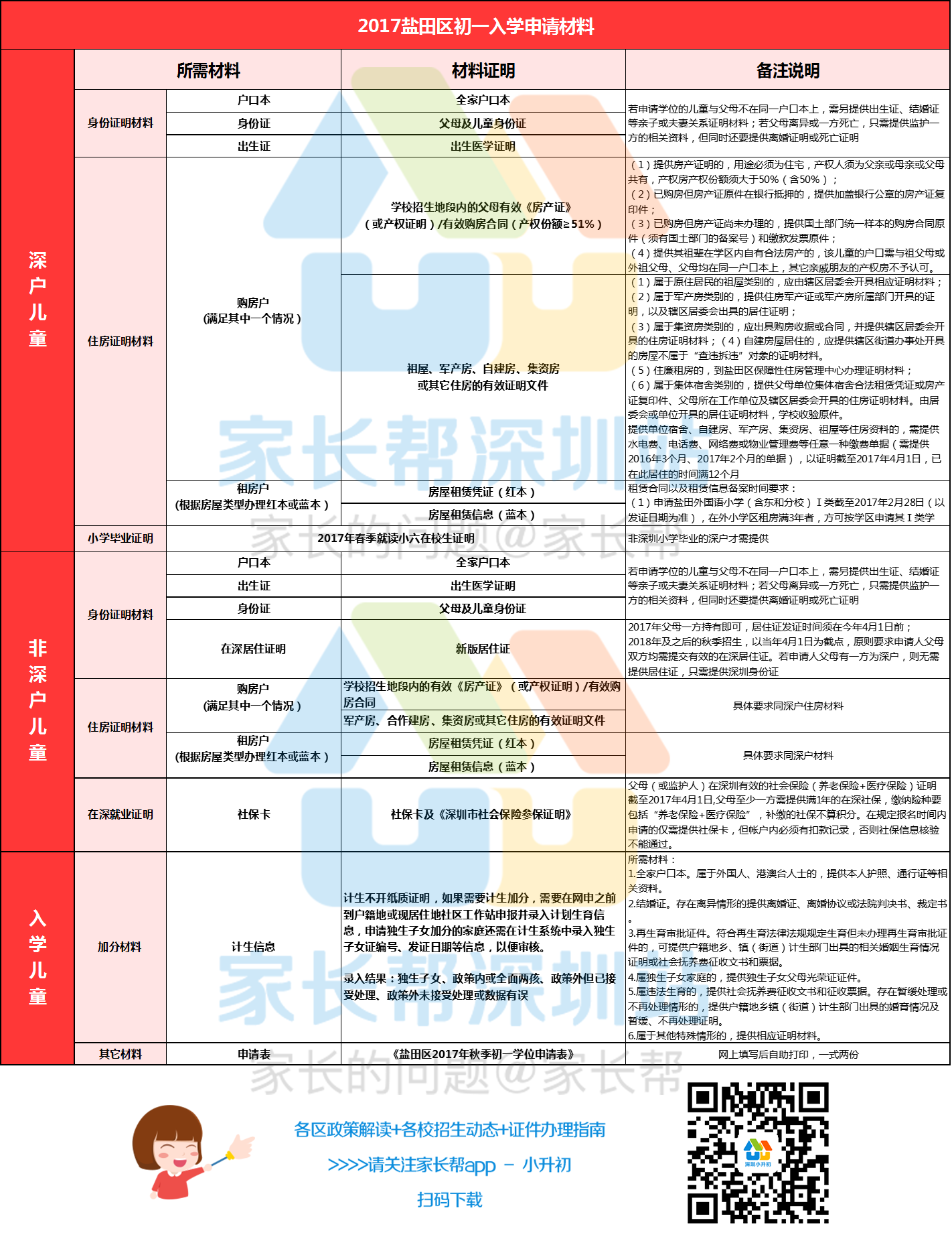 2017年深圳盐田区初一入学申请材料