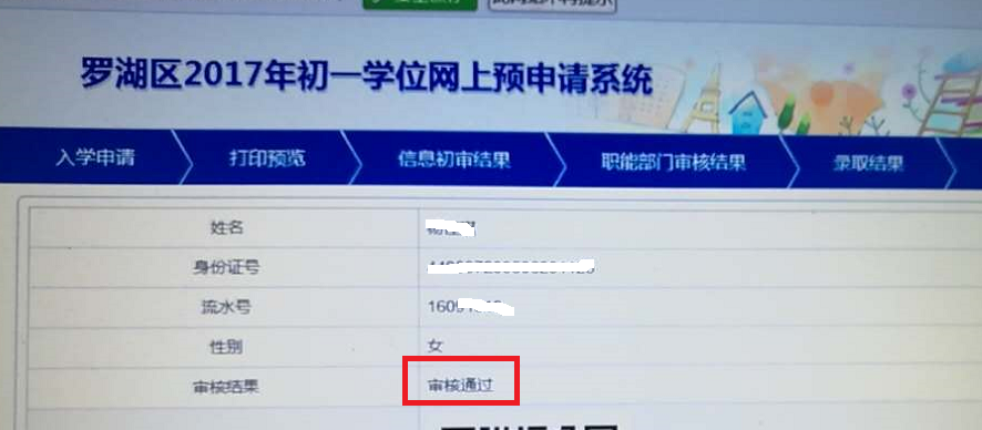 审核结果查询入口:罗湖区公办初一招生预报名系统(进不去的多试下)》》http://lhjjk.sz.edu.cn:8008/visit.html?orgdm=440201_gbcy&tpl=loginzs