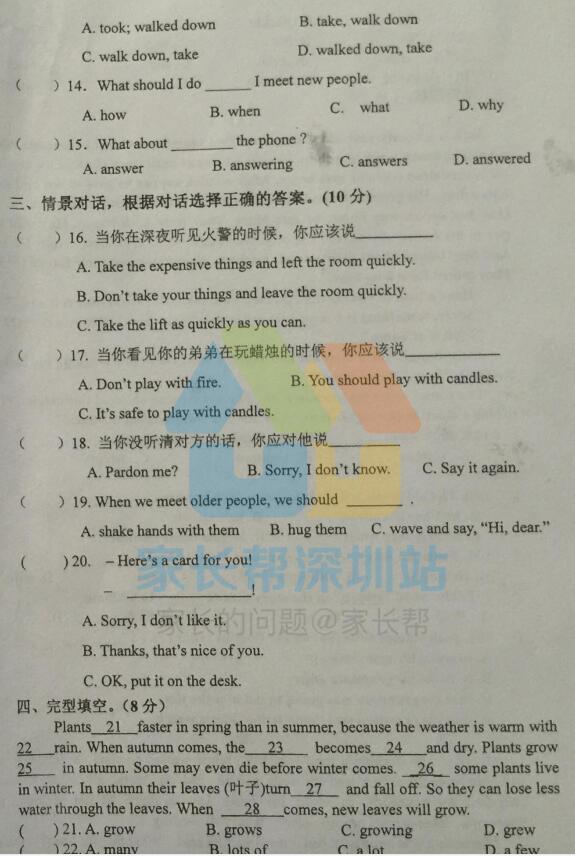 2017年深圳第二实验学校初一分班考试英语试卷(2)