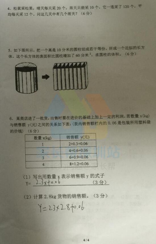 2017年深圳第二实验学校初一分班考试数学试卷(4)