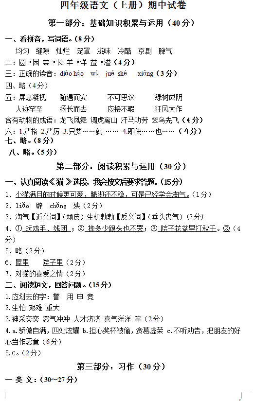 深圳小学四年级上册语文期中试题(五)(5)