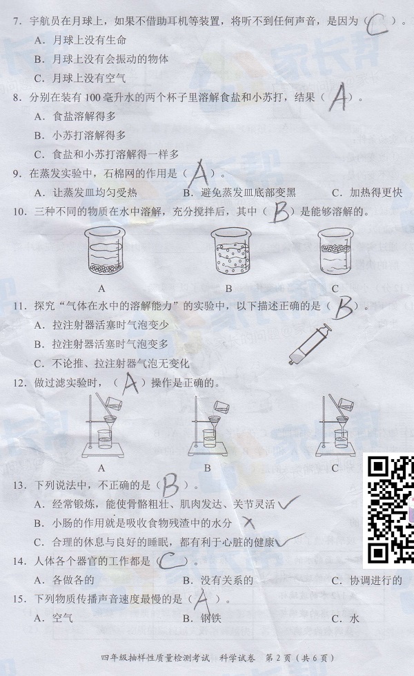 2017-2018深圳罗湖区四年级上期末科学试题(2)