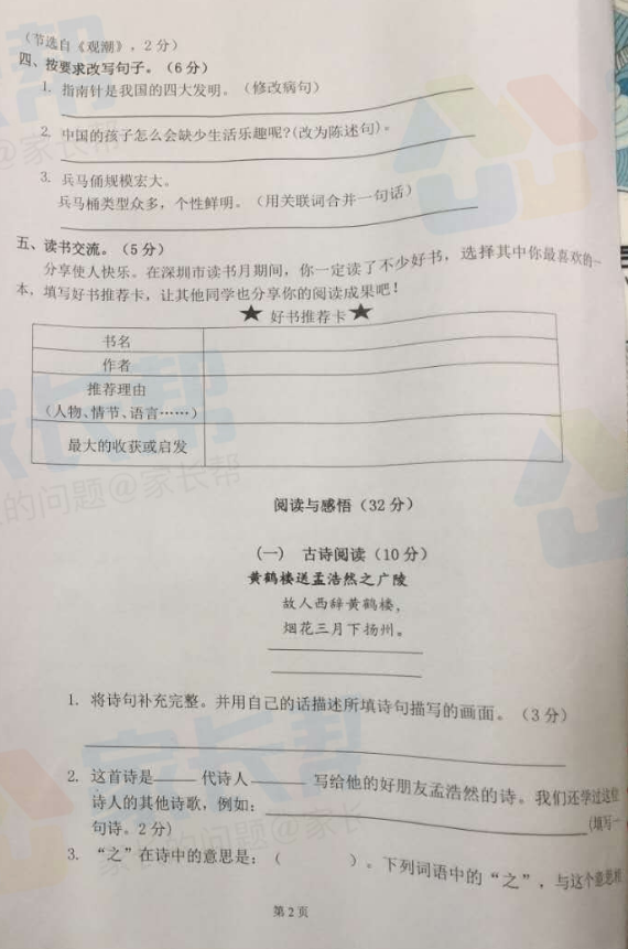 2017-2018深圳龙华区四年级上期末语文试题(2)