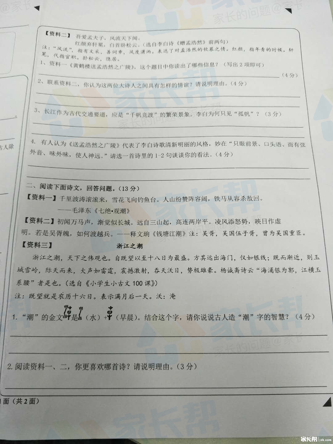 2017-2018深圳宝安区四年级上期末语文试题(2)