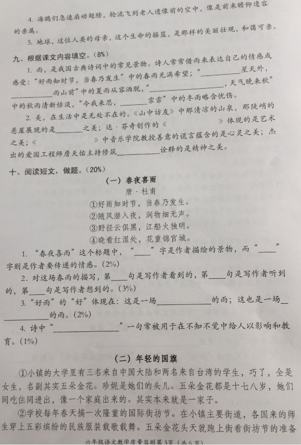 2017-2018深圳南山区六年级上期末语文试题(3)