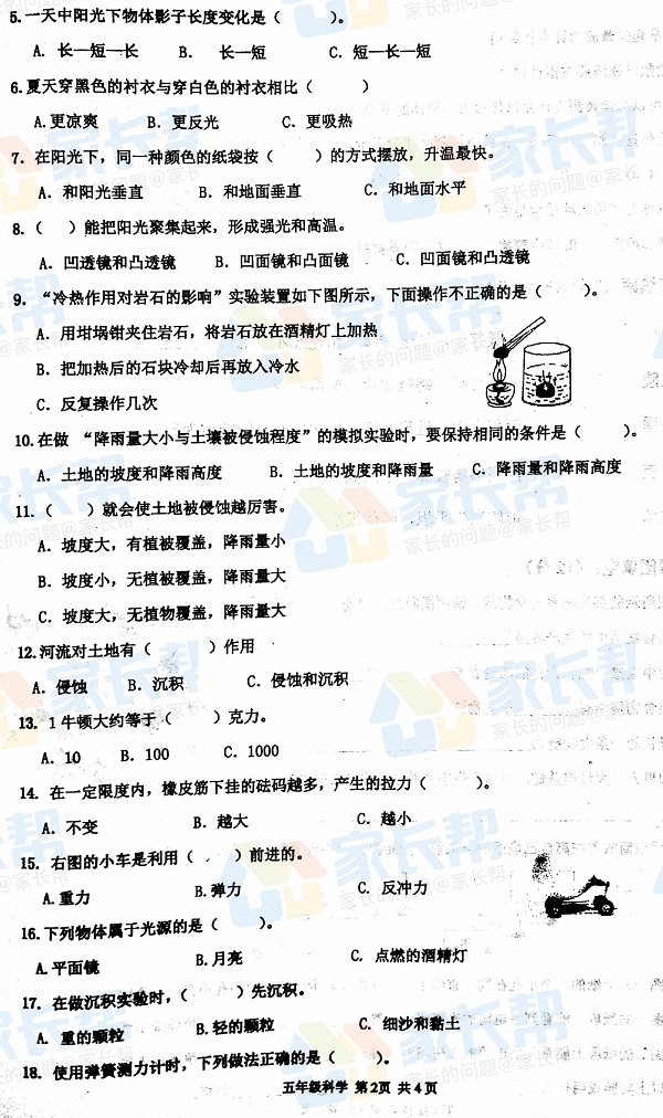 2017-2018深圳龙岗区五年级上期末科学试题(2)