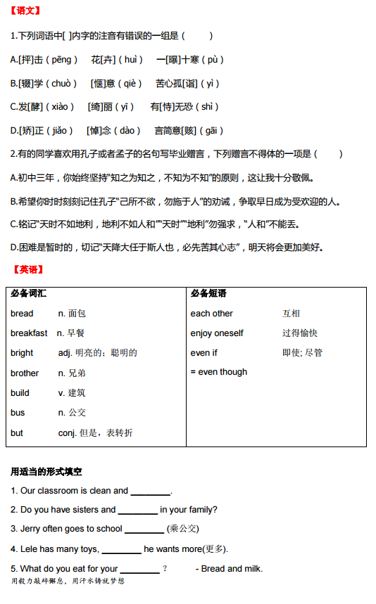 深圳小学语数外毕业考试模拟练习题(一)(2)
