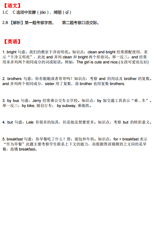 深圳小学语数外毕业考试模拟练习题(一)(4)