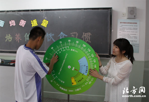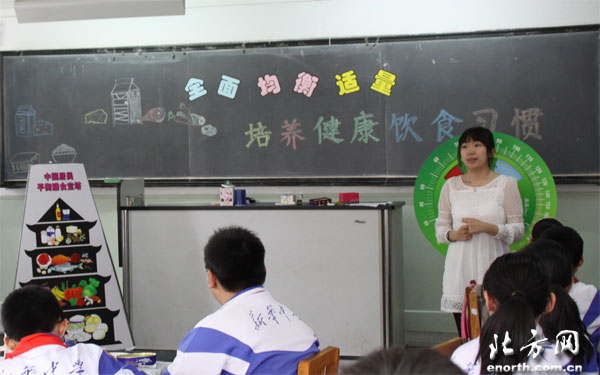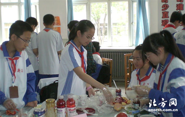 在第22个中国学生营养日当天,为了宣传今年营养日“全面、均衡、适量——培养健康的饮食行为”的主题,新华中学的健康课上举行了一场别开生面的“营养配餐大赛”。