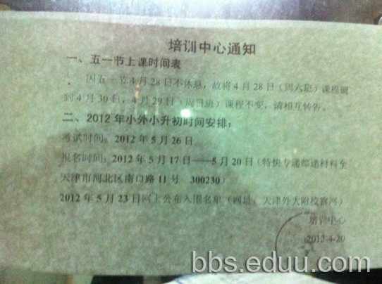 2012年天津“小外”小升初时间安排