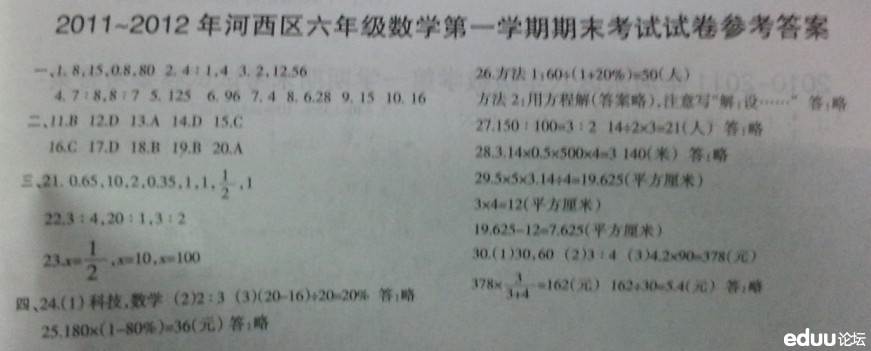 2011-2012河西区六年级数学第一学期期末试卷答案 家长帮社区 2012-12-20 18:07:06 2011-2012河西区六年级数学第一学期期末试卷答案 相关推荐: 2011-2012河西区六年级数学第一学期期末试卷 天津市小学历年六年级第一学期期末考试试题及答案汇总