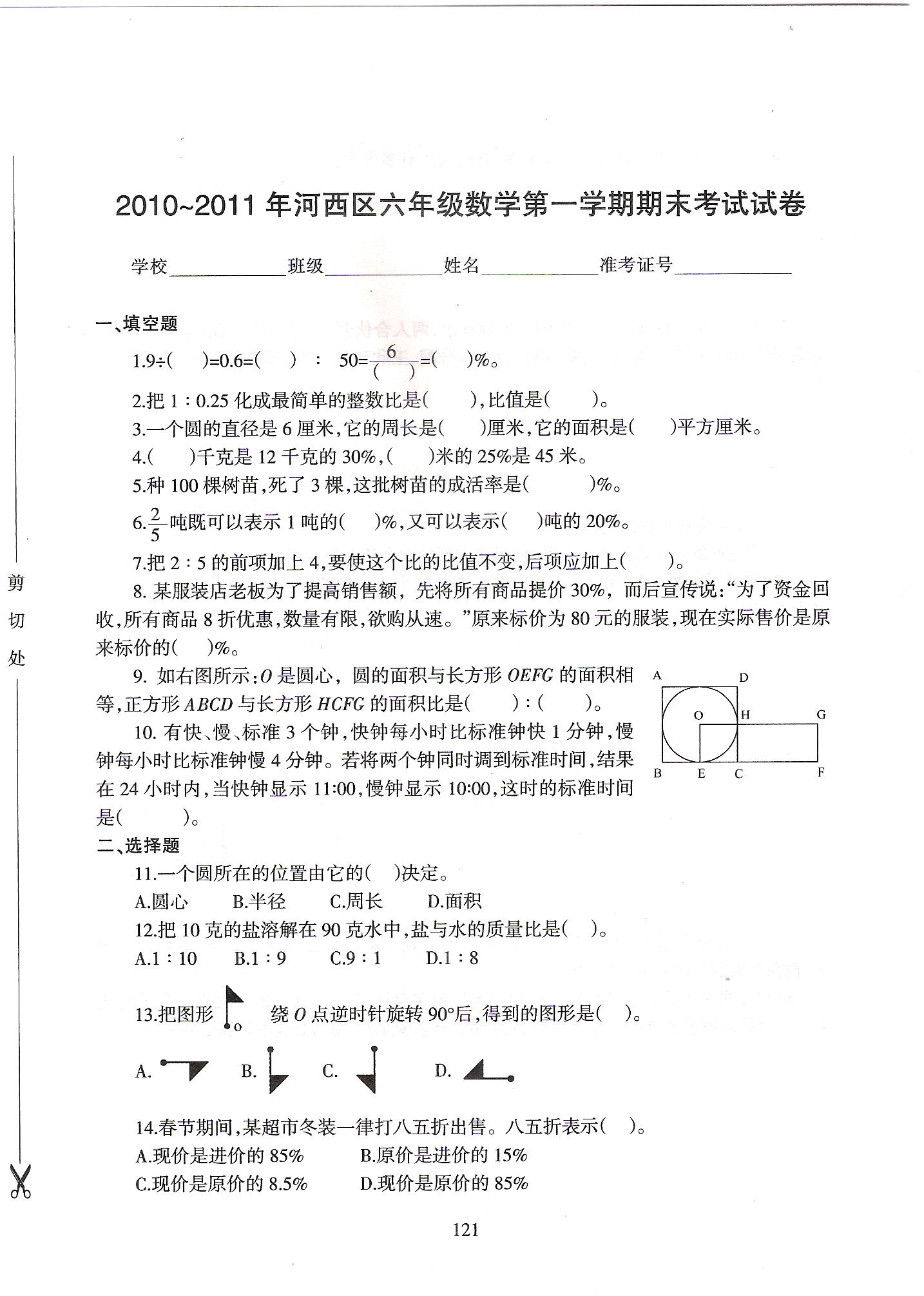 2010-2011河西区六年级数学第一学期期末试卷 奥数网整理 2013-01-07 10:18:25 2010-2011河西区六年级数学第一学期期末试卷 请下载附件: 2010-2011河西区六年级数学第一学期期末试卷 (本地下载 查看答案) 相关推荐: 天津市小学历年六年级第一学期期末考试试题及答案汇总
