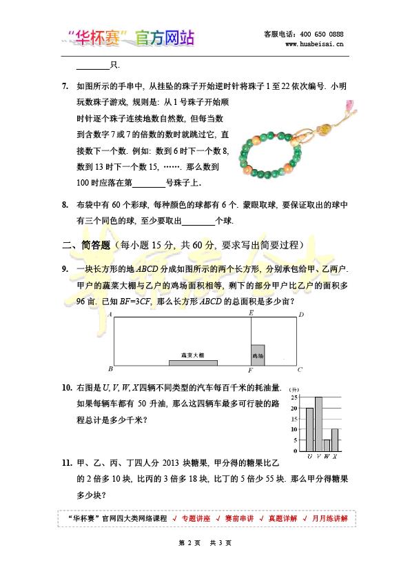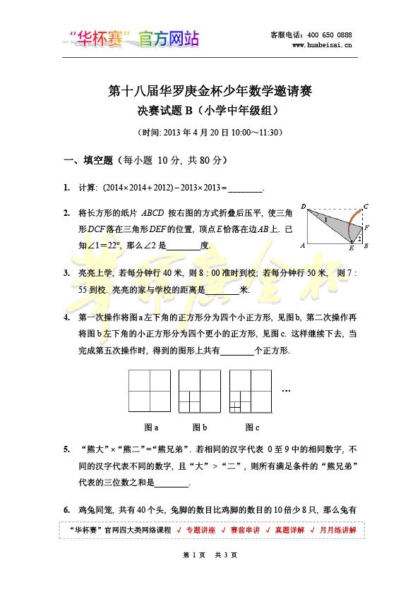 第18届华杯赛复赛小学中年级组B卷天津赛区试题及答案