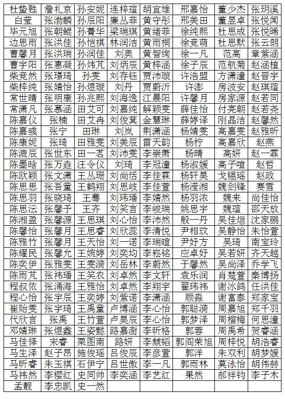 2013年天津外国语大学附属外国语学校(小外)初中招生综合能力测评入围名单(南开区)