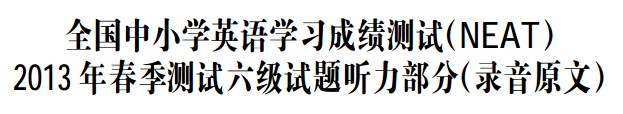 全国中小学英语学习成绩测试(NEAT)2013年春季测试六级试题参考答案(2)
