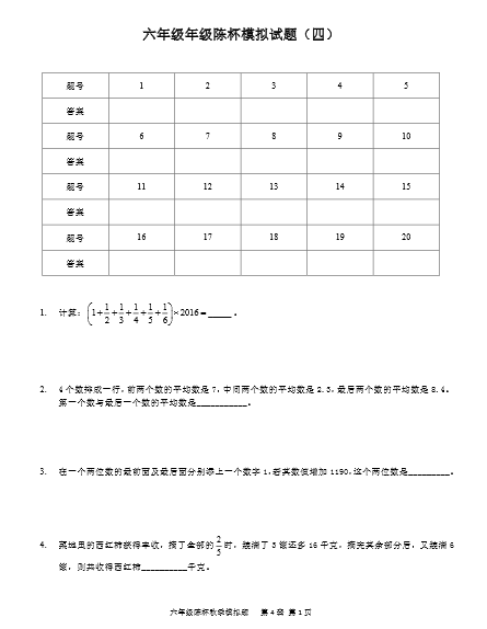 【2016天津陈省身杯六年级模拟试题(4)】