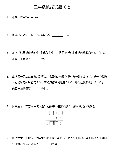 【点击下载>>>2016天津陈省身杯三年级模拟试题(7)以及答案】
