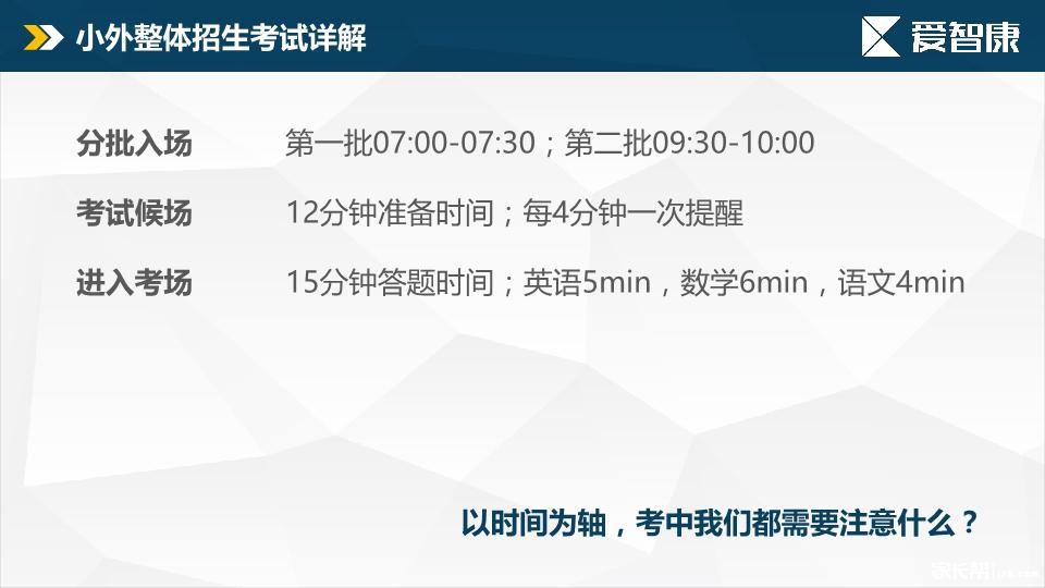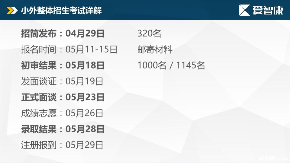 在这里根据2015年对小外初中招生重要事件进行整理,家长们可以先参考一下,提前调整最后冲刺阶段的备考安排。