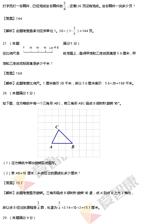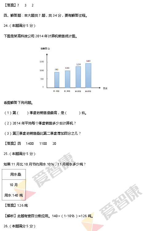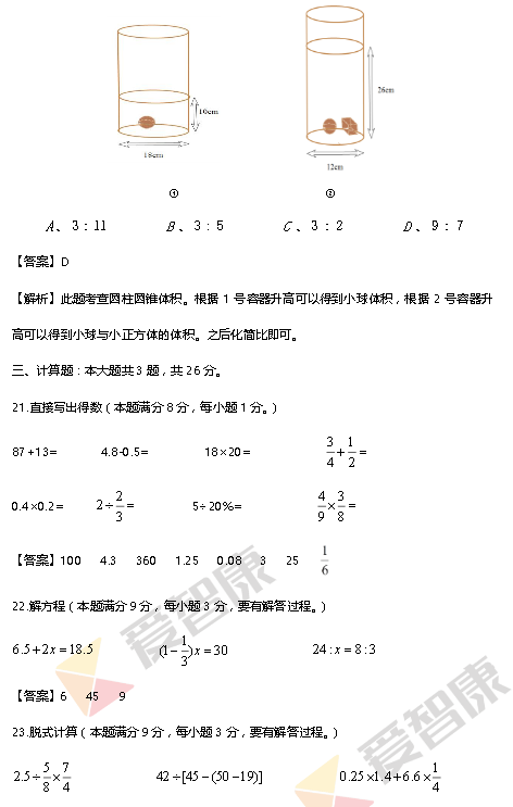 2015年天津河西区六年级下册数学期末考试试卷(3)