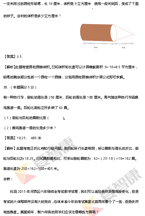 2015年天津河西区六年级下册数学期末考试试卷(4)
