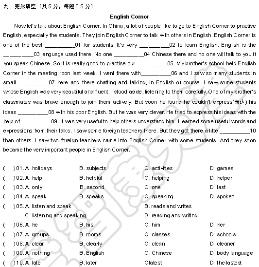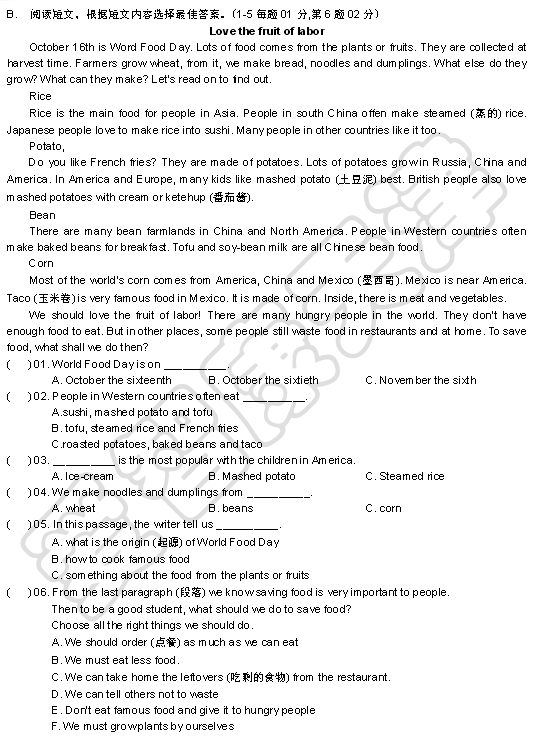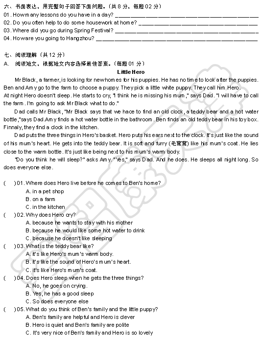 2015年天津河西区六年级下册英语期末考试试卷(2)