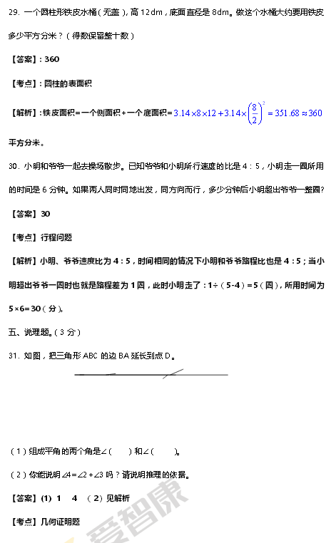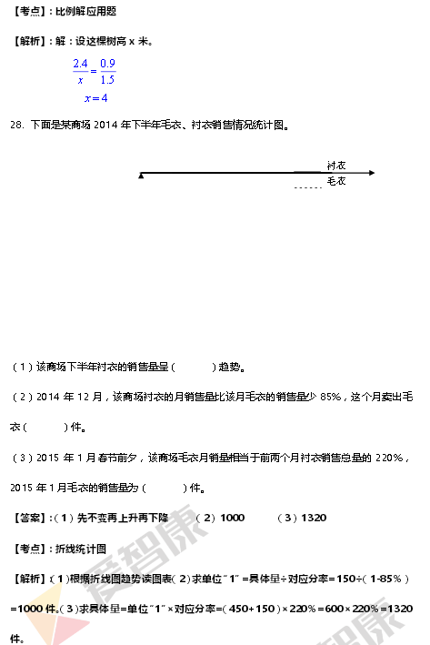 2015年天津南开区六年级下册数学期末考试试卷(4)