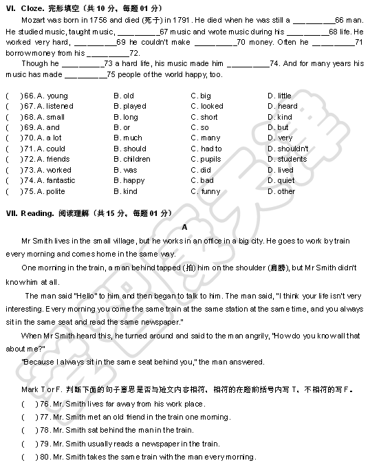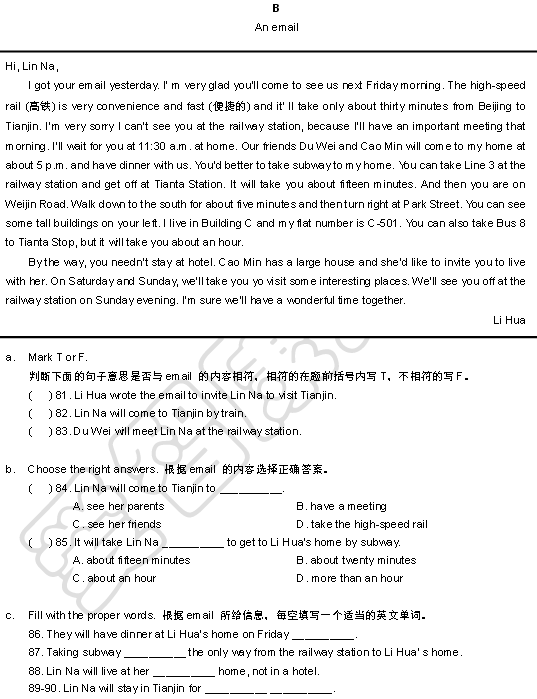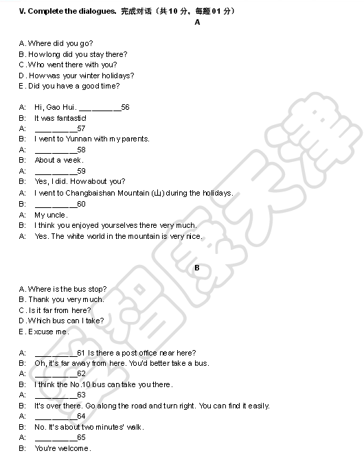 2015年天津南开区六年级下册英语期末考试试卷(2)