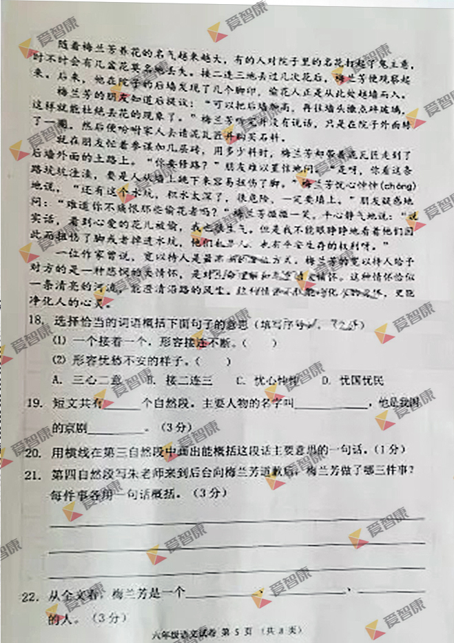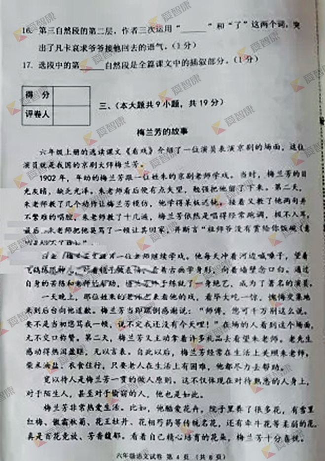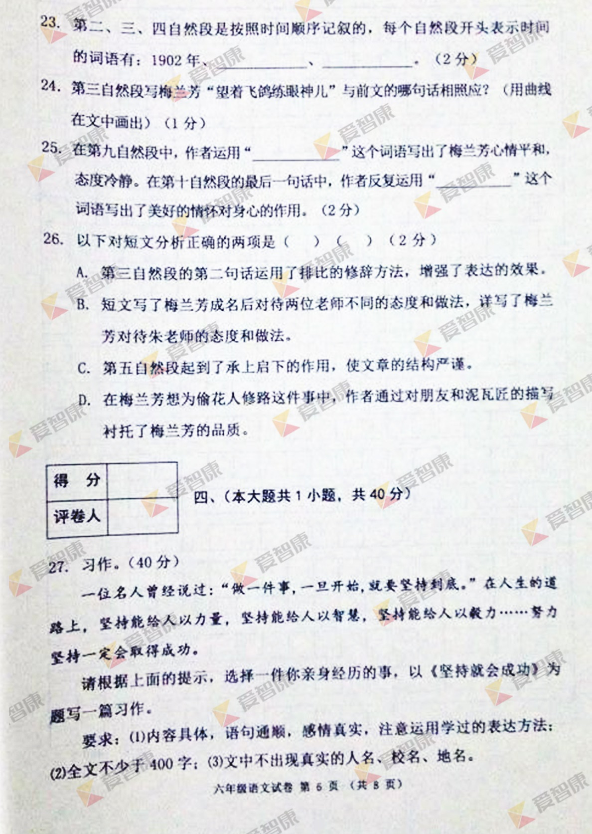 天津河西区2015~2016学年度六年级期末语文卷(2)