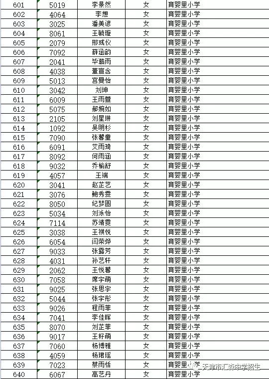 2017年天津市汇森中学小升初面谈名单公布(16)